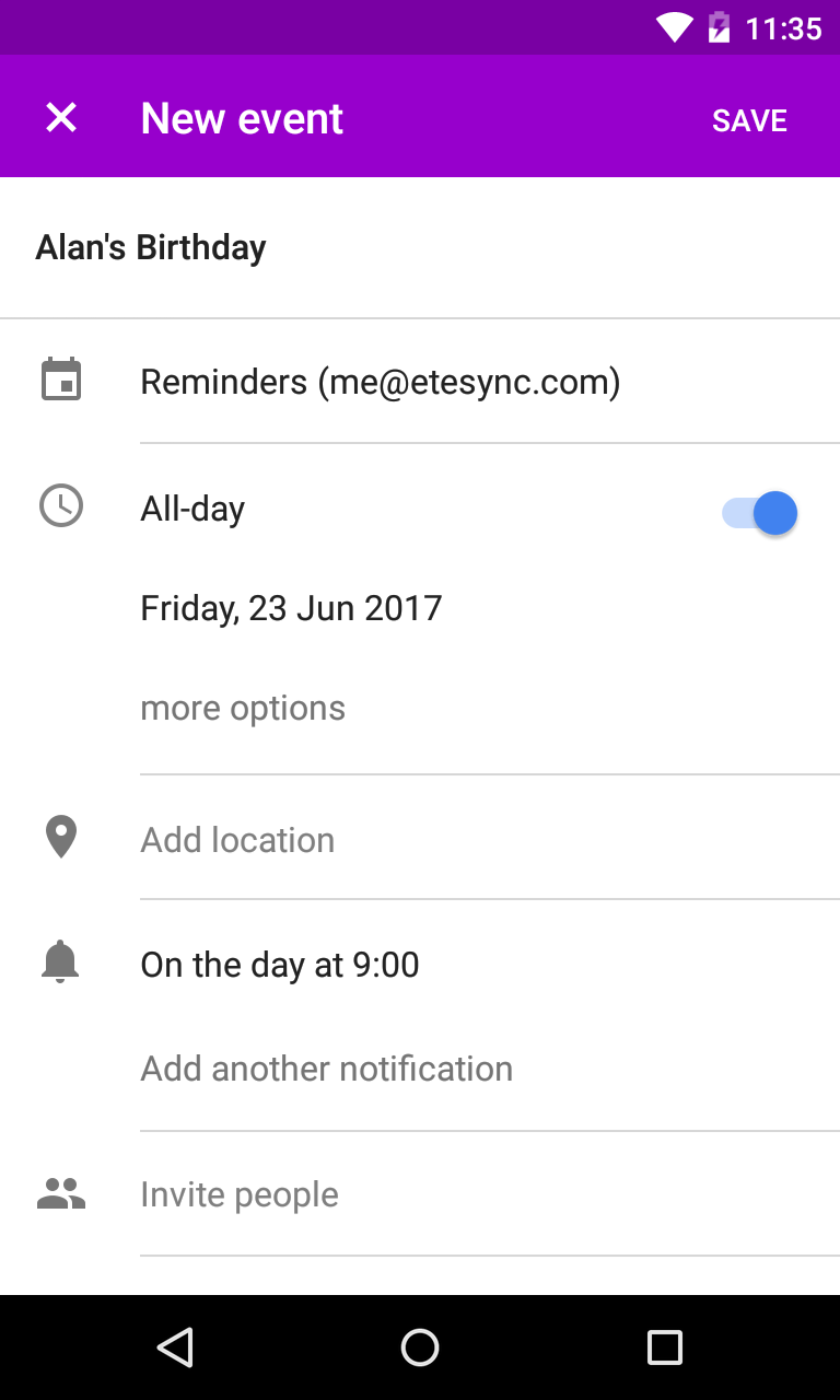 This is the main screen of the application. On the first run the application, depending on your Android version, may ask you for permissions needed for correct operation, namely access to contacts and calendars, and disabling battery optimization. Please approve them for correct operation of the app.